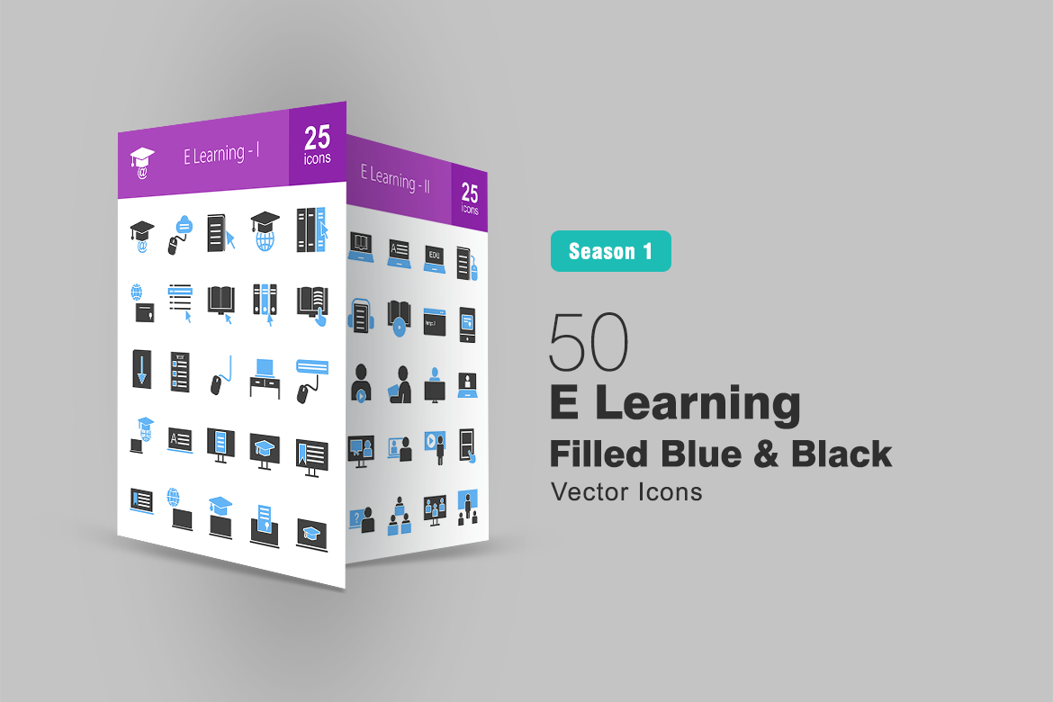 Download Набор иконок "50 E Learning Filled Blue & Black Icon Set" / 50 E Learning Filled Blue & Black Icon Set - Набор иконок на тему графика learning,icon,education,online,notes,book,degree,files,certificate,download,test,mouse,laptop,study,lectures,read,exam,grade,textbook,classroom