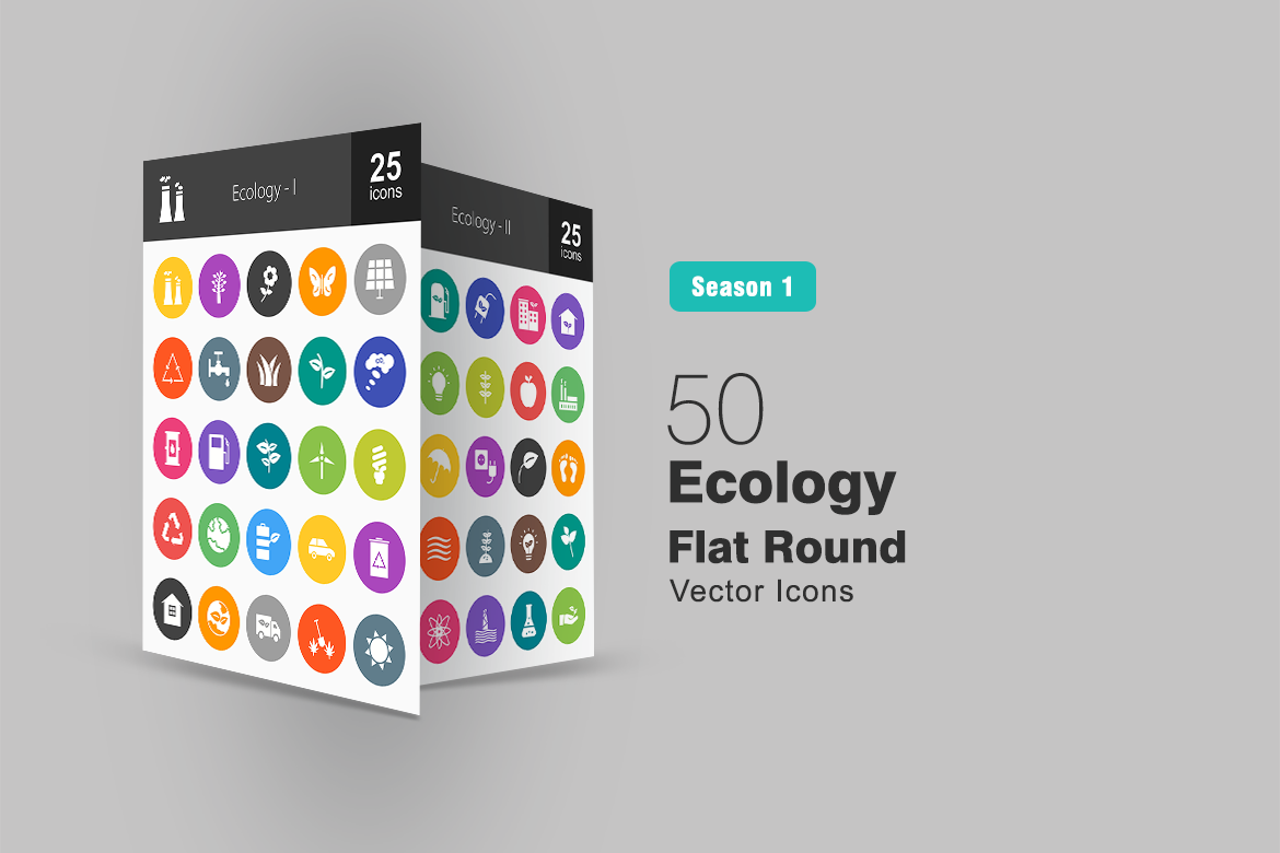Download Набор иконок "50 Ecology Flat Round Icon Set" / 50 Ecology Flat Round Icon Set - Набор иконок на тему графика ecology icon nuclear plant solar panel recycle water windmill electric bulb apple sun plantation leaves charging battery factory globe rain