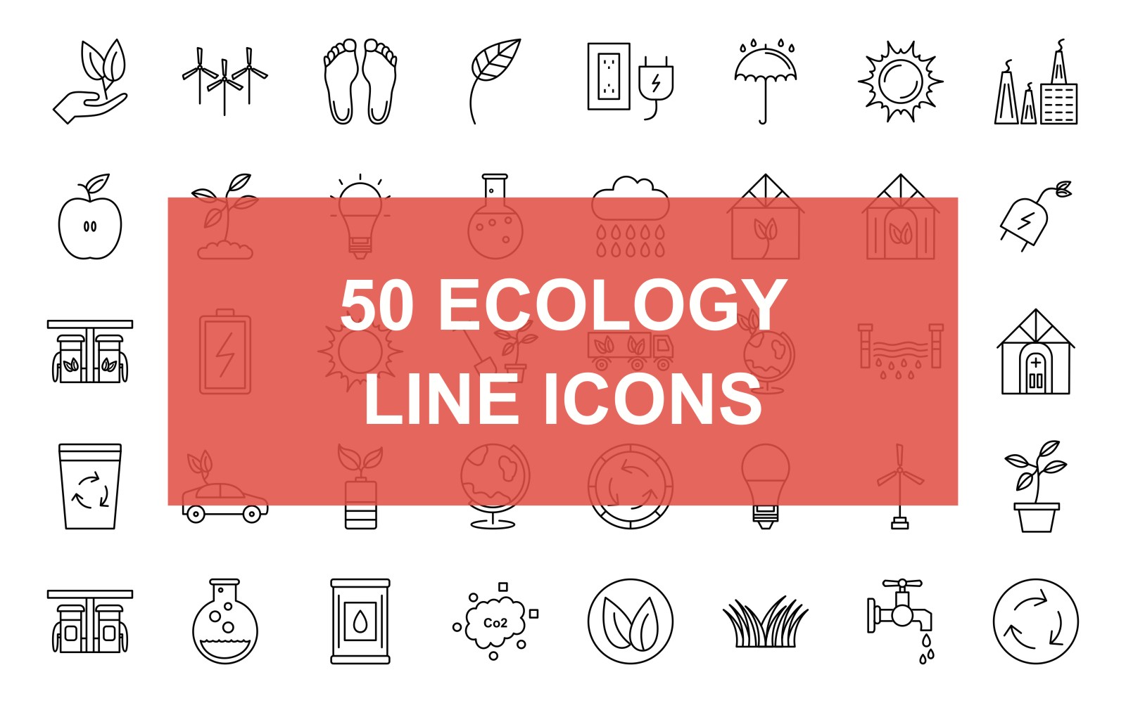 Download Набор иконок "50 Ecology Line Black Icon Set" / 50 Ecology Line Black Icon Set - Набор иконок на тему nature eco friendly,chemical flask,water dam,science,eco friendly house,leaves,eco friendly bulb,plant,water,multiple windmills,feet,leaf,plug and socket,umbrella,sun,factory,apple,electric bulb,rai
