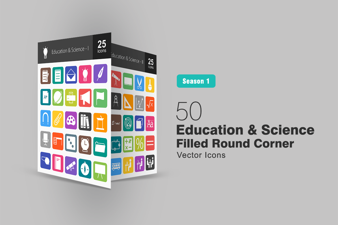 Download Набор иконок "50 Education & Science Filled Round Corner Icon Set" / 50 Education & Science Filled Round Corner Icon Set - Набор иконок на тему графика education,icons,science,book,icon,diploma,board,notebook,pen,paper,exam,compass,calculator,alphabet,dna,puzzle,chemistry,statistics,geometry,iconbunny