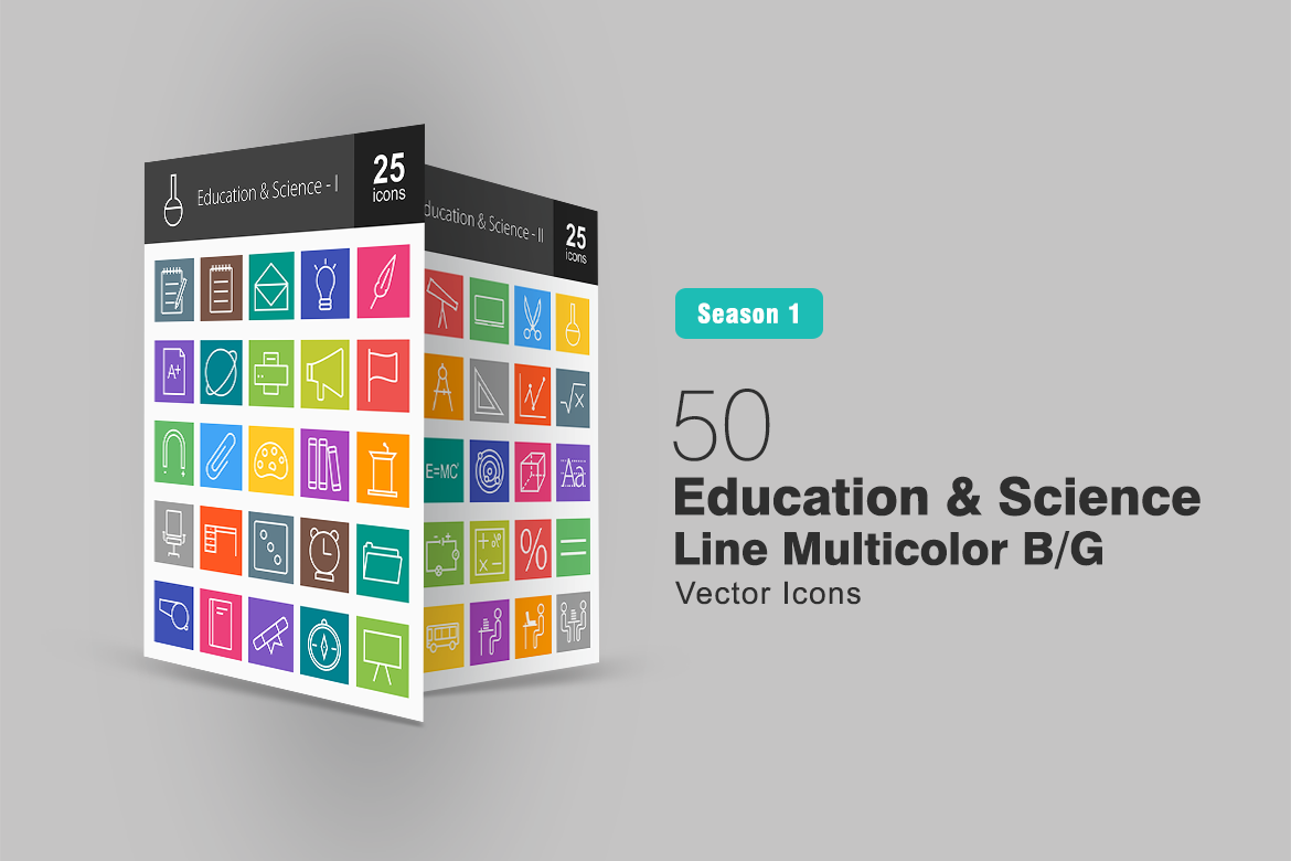 Download Набор иконок "50 Education & Science Line Multicolor B/G Icon Set" / 50 Education & Science Line Multicolor B/G Icon Set - Набор иконок на тему графика education icons science book icon diploma board notebook pen paper exam compass calculator alphabet dna puzzle chemistry statistics geometry iconbunny