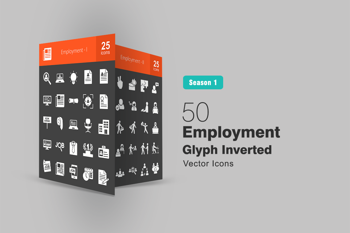 Download Набор иконок "50 Employment Glyph Inverted Icon Set" / 50 Employment Glyph Inverted Icon Set - Набор иконок на тему графика employment icon job candidate employee wanted user profile resume online advertising diploma target certification hiring post office apply formal position