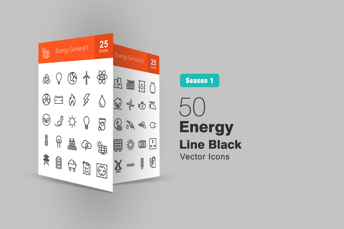 Download Набор иконок "50 Energy Line Icon Set" / 50 Energy Line Icon Set - Набор иконок на тему графика energy icon science power electricity solar wind water temperature heat vehicle transport charge battery socket engine radiation oil iconbunny flat