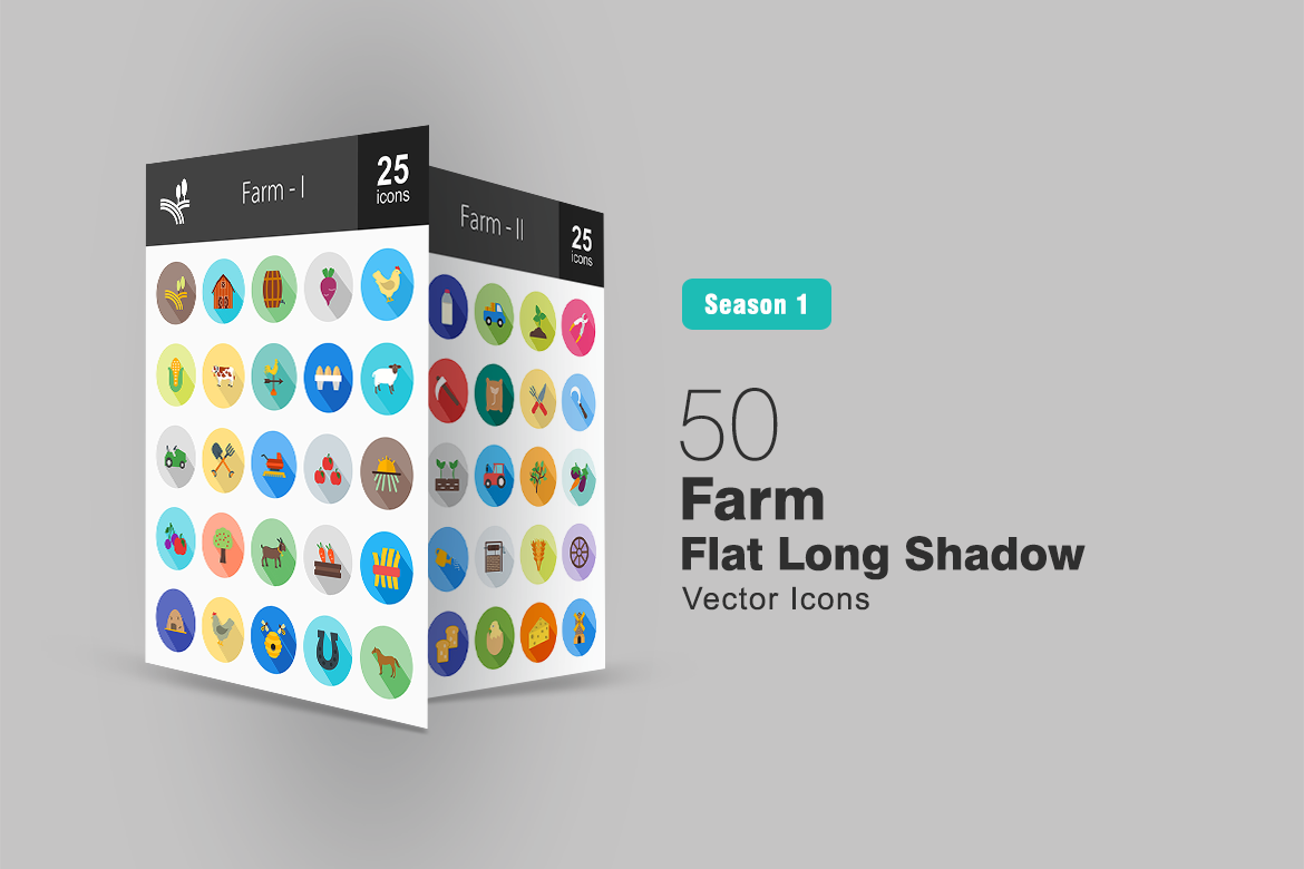 Download Набор иконок "50 Farm Flat Long Shadow Icon Set" / 50 Farm Flat Long Shadow Icon Set - Набор иконок на тему графика farm,icon,barn,barrel,beet,chicken,animals,eggs,goat,fields,fruits,vegetables,hive,horse,shoe,irrigation,milk,planting,tree,seeds