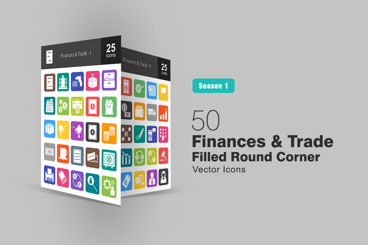 Download Набор иконок "50 Finances & Trade Filled Round Corner Icon Set" / 50 Finances & Trade Filled Round Corner Icon Set - Набор иконок на тему графика finance,icon,trade,business,office,package,files,cashier,cent,documents,dollar,shopping,carrier,euro,stacks,money,notes,shredder,vault,settings