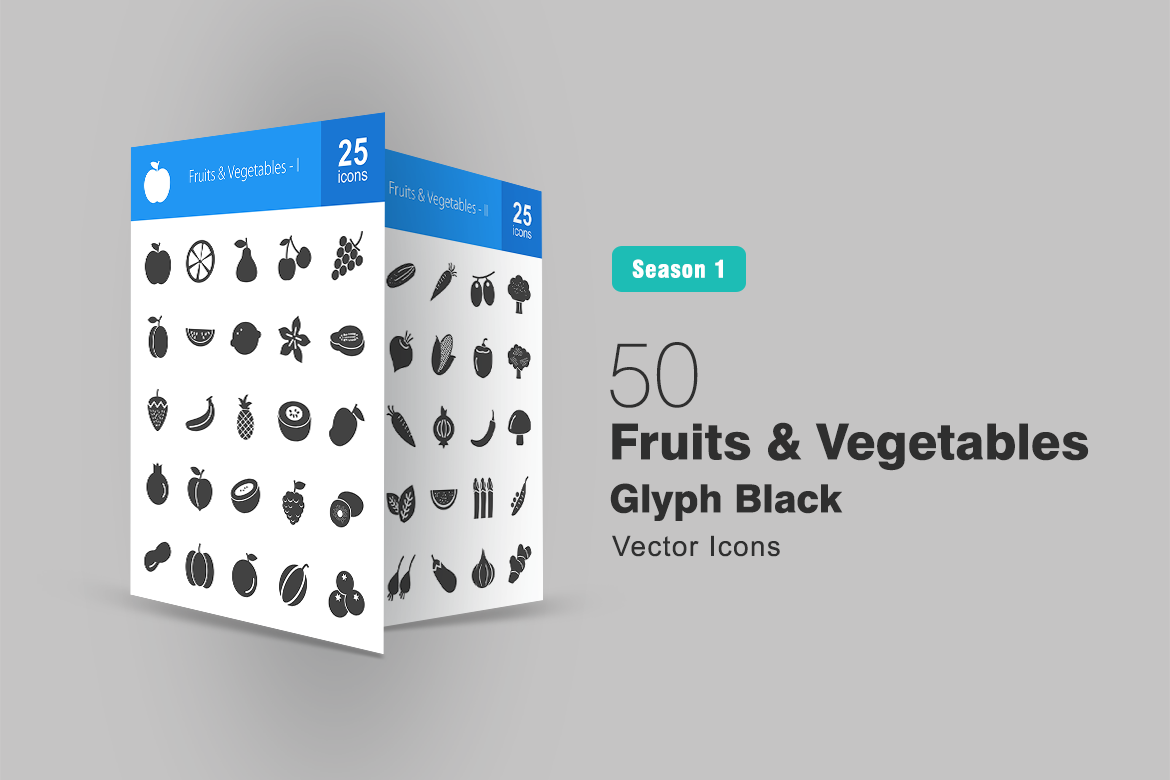 Download Набор иконок "50 Fruits & Vegetables Glyph Icon Set" / 50 Fruits & Vegetables Glyph Icon Set - Набор иконок на тему графика fruits icon apple orange pear cherry grapes plum lemon strawberry banana mango melon peach coconut raspberry kiwi vegetable carrot cucumber