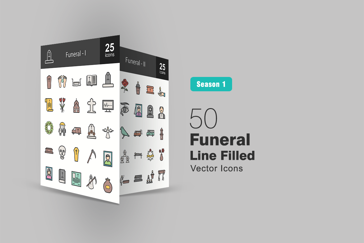 Download Набор иконок "50 Funeral Filled Line Icon Set" / 50 Funeral Filled Line Icon Set - Набор иконок на тему графика funeral,icon,casket,deadbody,coffin,grave,death,church,family,angel,skull,obituary,ashes,priest,wreath,graveyard,mosque,crying,body,rest