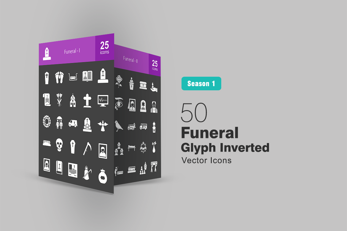 Download Набор иконок "50 Funeral Glyph Inverted Icon Set" / 50 Funeral Glyph Inverted Icon Set - Набор иконок на тему графика funeral,icon,casket,deadbody,coffin,grave,death,church,family,angel,skull,obituary,ashes,priest,wreath,graveyard,mosque,crying,body,rest