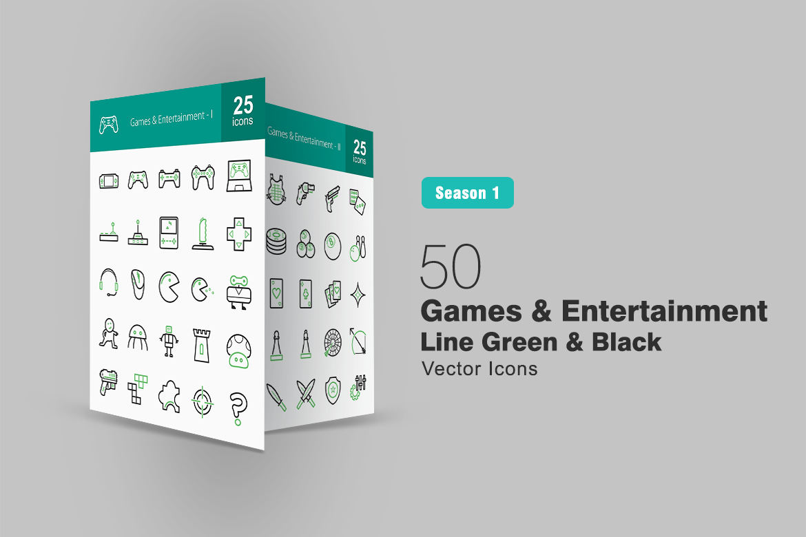 Download Набор иконок "50 Games & Entertainment Line Green & Black Icon Set" / 50 Games & Entertainment Line Green & Black Icon Set - Набор иконок на тему графика games icon entertainment video playstation gaming console online headphones mouse character robot castle gun bricks puzzle target revolver iconbunny