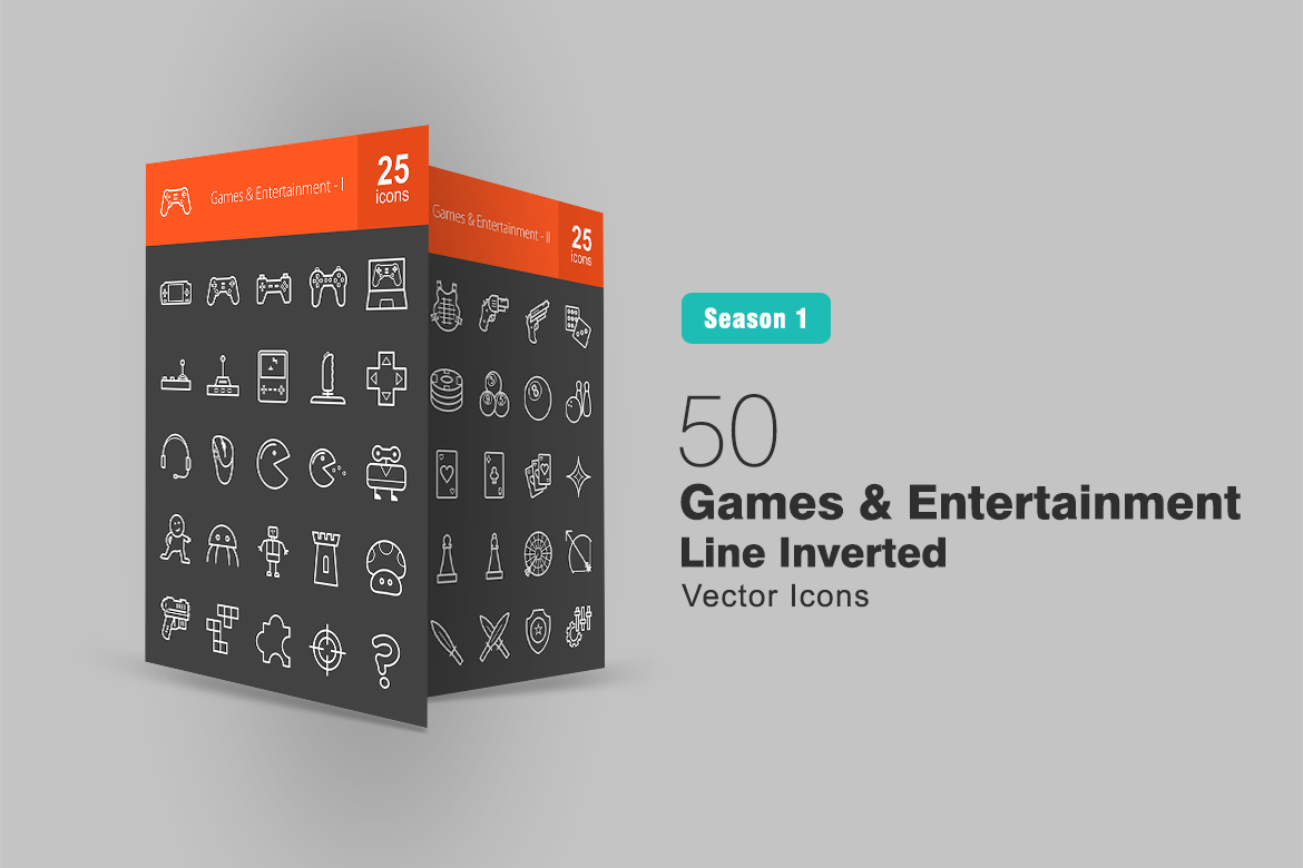 Download Набор иконок "50 Games & Entertainment Line Inverted Icon Set" / 50 Games & Entertainment Line Inverted Icon Set - Набор иконок на тему графика games icon entertainment video playstation gaming console online headphones mouse character robot castle gun bricks puzzle target revolver iconbunny