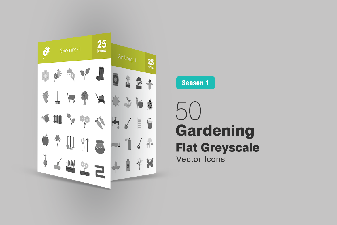 Download Набор иконок "50 Gardening Flat Greyscale Icon Set" / 50 Gardening Flat Greyscale Icon Set - Набор иконок на тему графика gardening icon planting plantation flower leaves trees lawn water fence plant fruits vegetables pesticide insect shovel gardener farming iconbunny flat