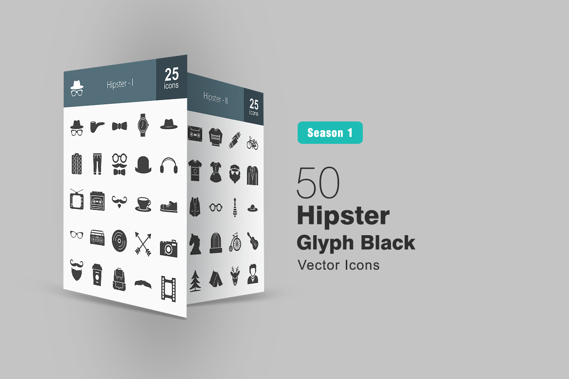 Download Набор иконок "50 Hipster Glyph Icon Set" / 50 Hipster Glyph Icon Set - Набор иконок на тему графика hipster icon style smoking pipe bow tie watch hat shirt trousers headphones music player television moustache tea shoe glasses man