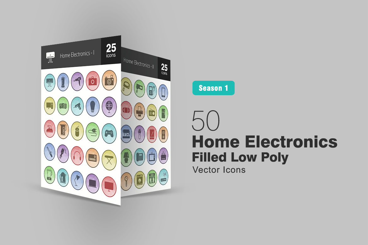 Download Набор иконок "50 Home Electronics Filled Low Poly Icon Set" / 50 Home Electronics Filled Low Poly Icon Set - Набор иконок на тему графика electronics icon home air conditioner mixer refrigerator computer iron microwave telephone blender camera laptop speaker toaster radio television playstation iconbunny