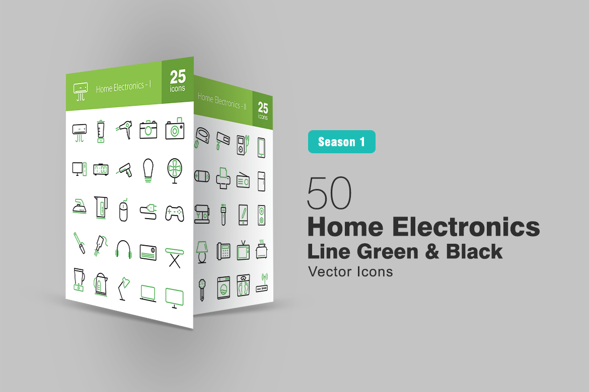 Download Набор иконок "50 Home Electronics Line Green & Black Icon Set" / 50 Home Electronics Line Green & Black Icon Set - Набор иконок на тему графика electronics icon home air conditioner mixer refrigerator computer iron microwave telephone blender camera laptop speaker toaster radio television playstation iconbunny