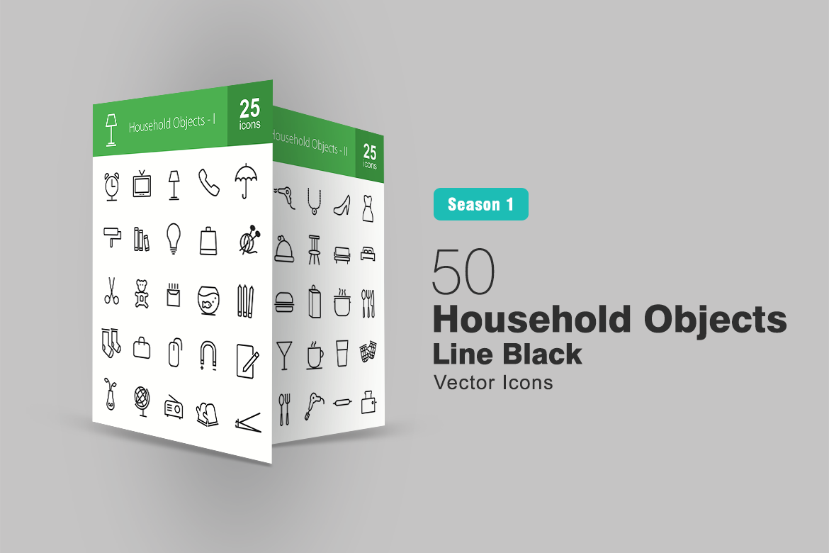 Download Набор иконок "50 Household Objects Line Icon Set" / 50 Household Objects Line Icon Set - Набор иконок на тему графика household icon objects items clock phone books bulb shopping bag shoes kitchen accessories mirror crockery milk toaster socks pencils burger