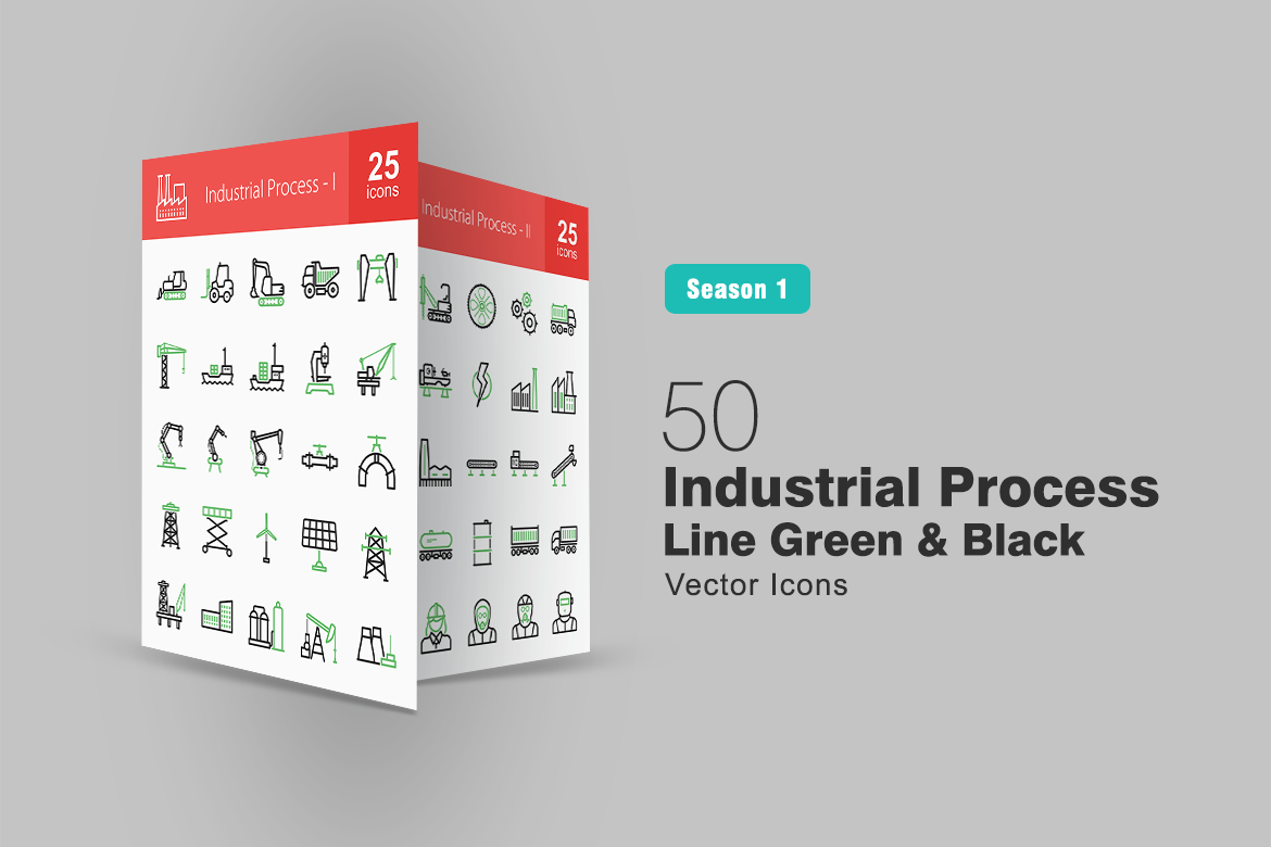 Download Набор иконок "50 Industrial Process Line Green & Black Icon Set" / 50 Industrial Process Line Green & Black Icon Set - Набор иконок на тему графика industry icon heavy machinery bulldozer crane cargo machine robot valve lifter windmill solar panel power oil stock refinery nuclear plant