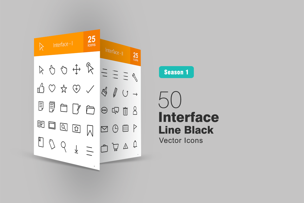 Download Набор иконок "50 Interface Line Icon Set" / 50 Interface Line Icon Set - Набор иконок на тему графика interface icons user display ui icon mouse click lock warning alert calendar clock email attachment document file configuration iconbunny flat