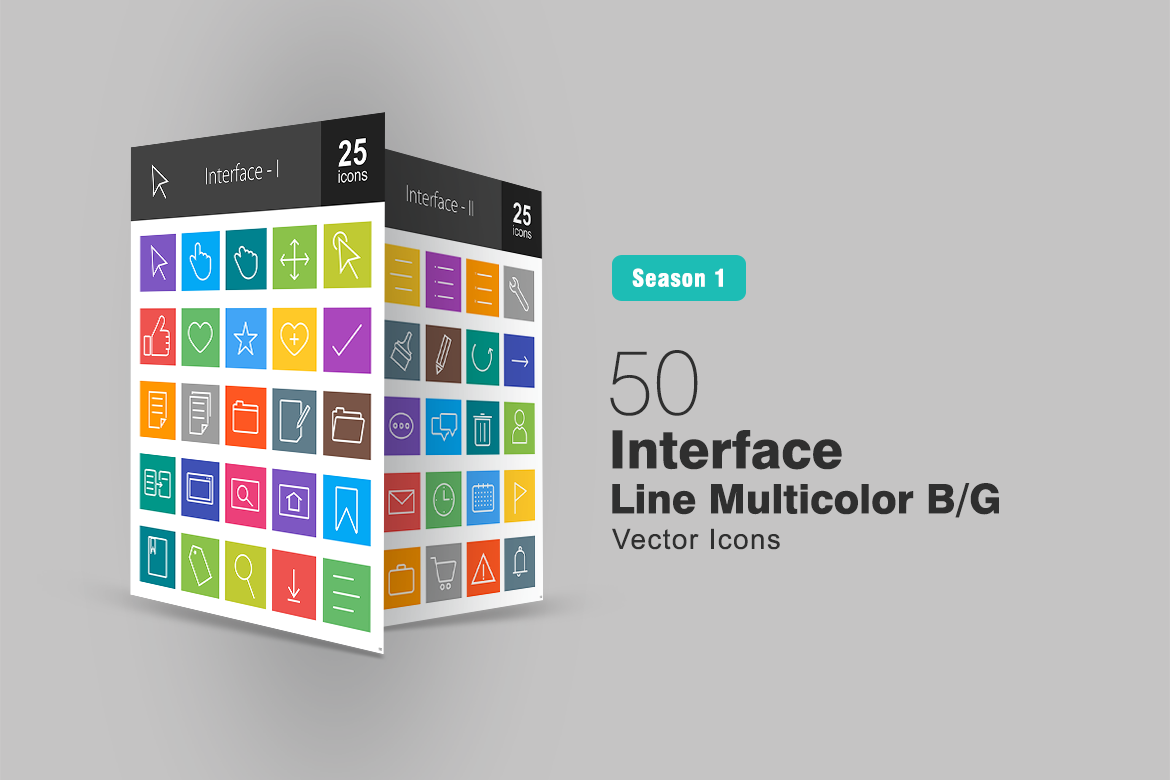 Download Набор иконок "50 Interface Line Multicolor B/G Icon Set" / 50 Interface Line Multicolor B/G Icon Set - Набор иконок на тему графика interface icons user display ui icon mouse click lock warning alert calendar clock email attachment document file configuration iconbunny flat