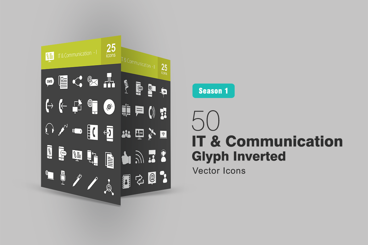 Download Набор иконок "50 IT & Communication Glyph Inverted Icon Set" / 50 IT & Communication Glyph Inverted Icon Set - Набор иконок на тему графика technology icon communication sms news call network connection notification pen phonebook video camera contact team microphone document mobile typing iconbunny
