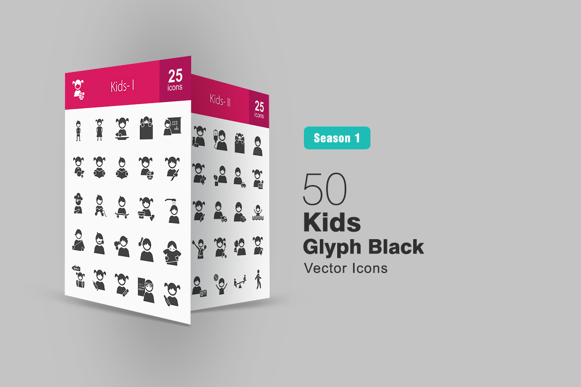 Download Набор иконок "50 Kids Glyph Icon Set" / 50 Kids Glyph Icon Set - Набор иконок на тему графика kids icon child boy girl reading sleeping eating painting playing brushing hair drying going drinking drawing swimming cheerleading listening sitting