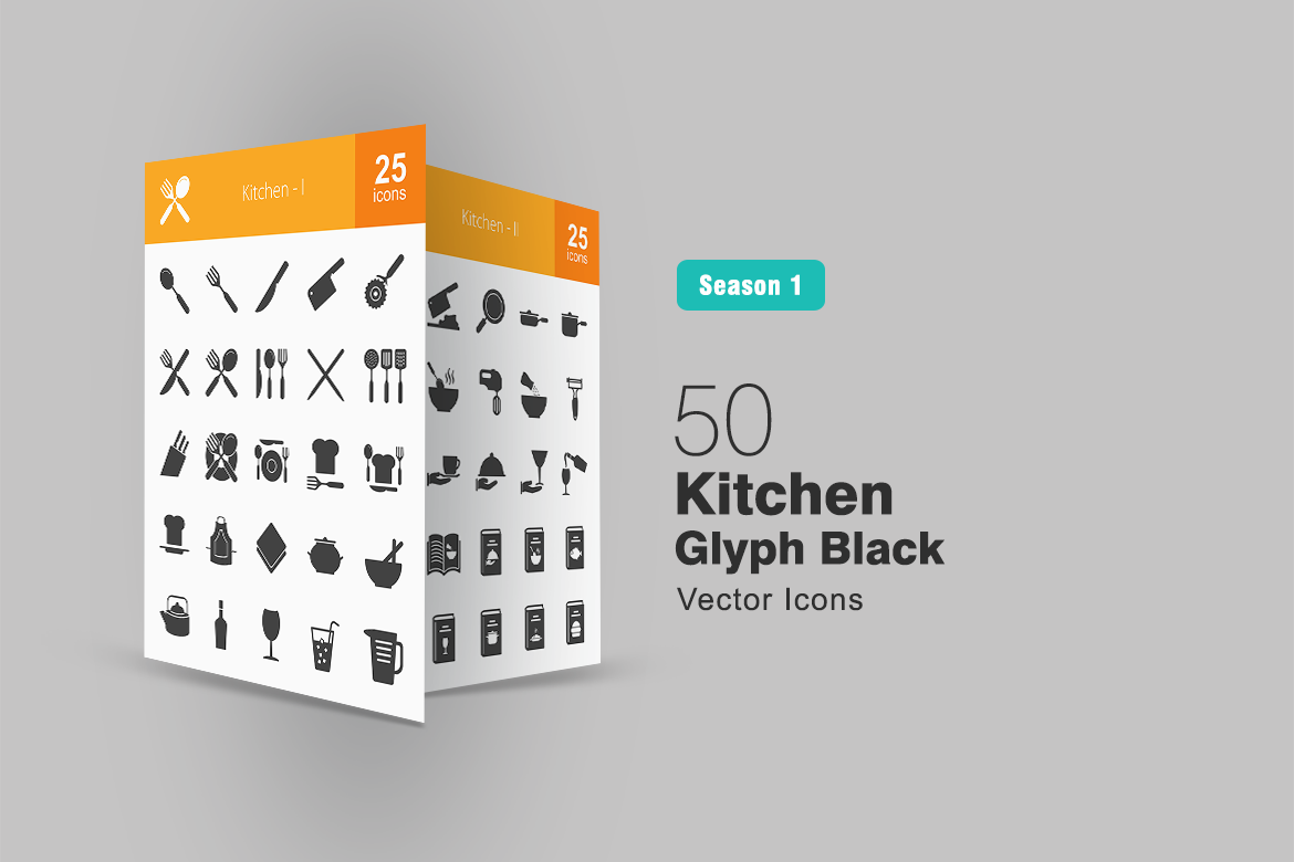 Download Набор иконок "50 Kitchen Glyph Icon Set" / 50 Kitchen Glyph Icon Set - Набор иконок на тему графика kitchen icon spoon fork knife plate chef apron napkin food kettle wine bottle glass drink pitcher pan cooking stove board