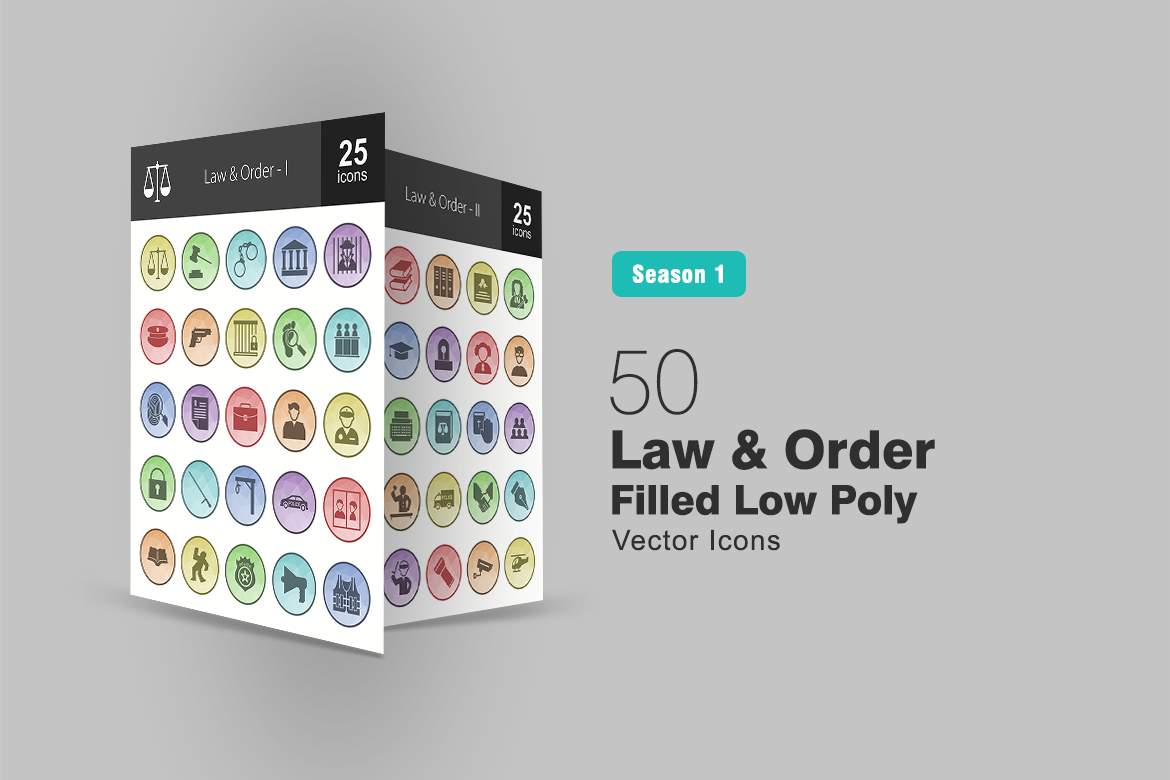 Download Набор иконок "50 Law & Order Filled Low Poly Icon Set" / 50 Law & Order Filled Low Poly Icon Set - Набор иконок на тему графика law icon order balance court crime criminal files judge police officer jail locker gallows book certificate jury fighting iconbunny flat
