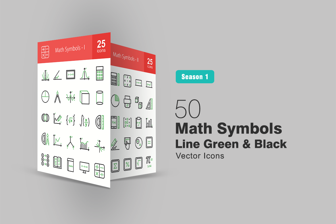 Download Набор иконок "50 Math Symbols Line Green & Black Icon Set" / 50 Math Symbols Line Green & Black Icon Set - Набор иконок на тему графика math,icon,symbols,algebra,angle,arithmetic,graph,circle,compass,cube,cylinder,formula,geometry,integral,logic,book,measurement,number,calculation,pie