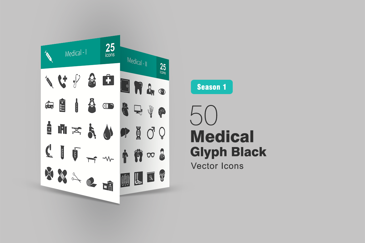 Download Набор иконок "50 Medical Glyph Icon Set" / 50 Medical Glyph Icon Set - Набор иконок на тему графика medical icon medicine healthcare health doctor surgeon nurse syringe ambulance first aid hospital organ patient examination blood injury human iconbunny