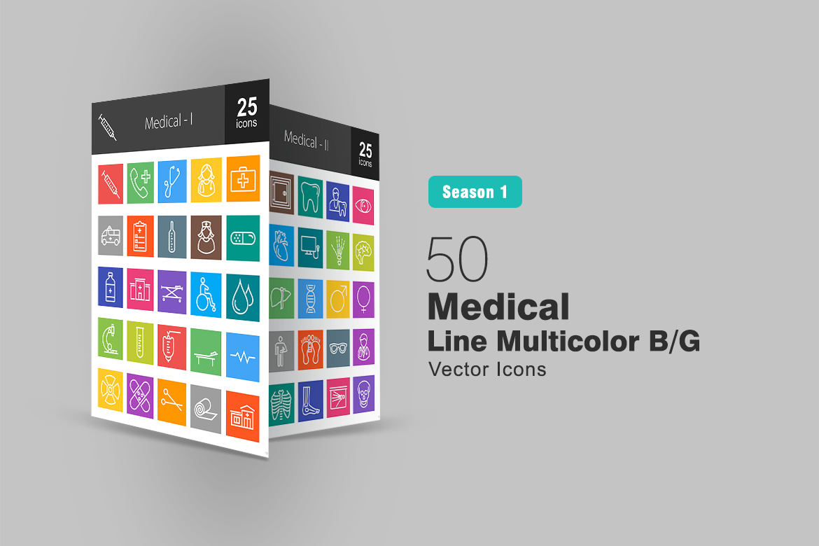 Download Набор иконок "50 Medical Line Multicolor B/G Icon Set" / 50 Medical Line Multicolor B/G Icon Set - Набор иконок на тему графика medical icon medicine healthcare health doctor surgeon nurse syringe ambulance first aid hospital organ patient examination blood injury human iconbunny