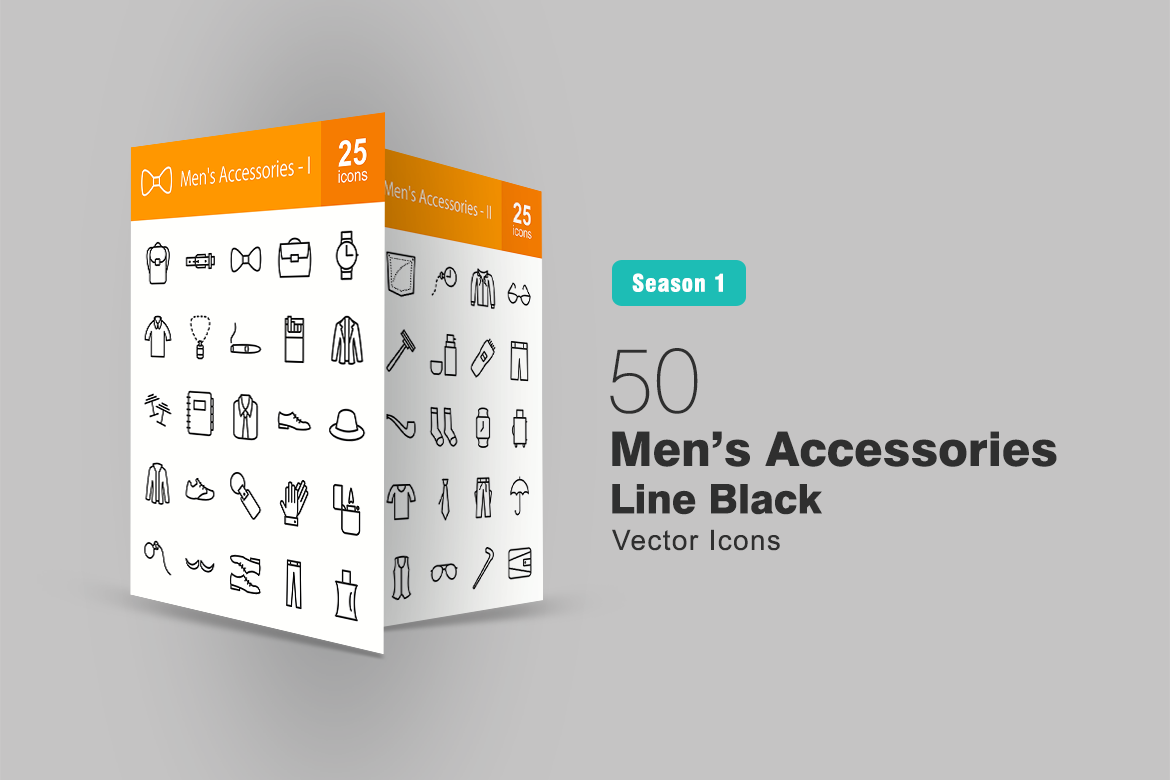 Download Набор иконок "50 Men's Accessories Line Icon Set" / 50 Men's Accessories Line Icon Set - Набор иконок на тему графика man,icon,accessories,backpack,belt,tie,briefcase,watch,shirt,chain,cigar,cigarette,coat,cuff,links,diary,shoes,hat,jacket,gloves