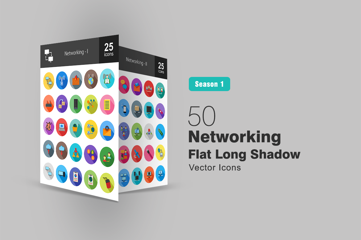 Download Набор иконок "50 Networking Flat Long Shadow Icon Set" / 50 Networking Flat Long Shadow Icon Set - Набор иконок на тему графика networking icon connections network shared systems tower signals firewall server cloud chatting satellite globe processors conversation messages computer file sharing