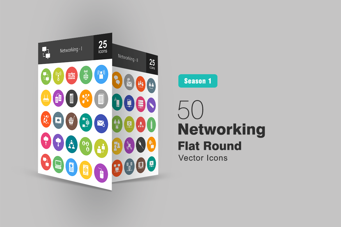Download Набор иконок "50 Networking Flat Round Icon Set" / 50 Networking Flat Round Icon Set - Набор иконок на тему графика networking icon connections network shared systems tower signals firewall server cloud chatting satellite globe processors conversation messages computer file sharing