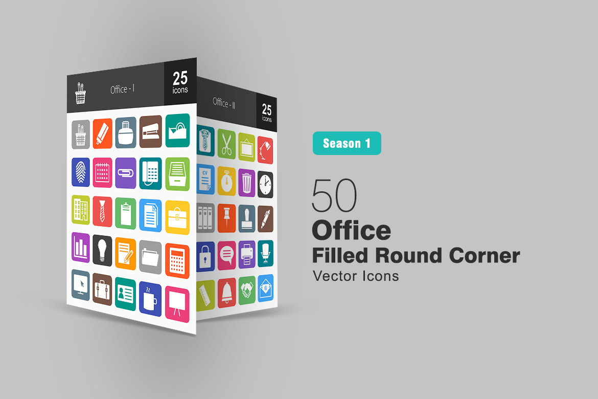 Download Набор иконок "50 Office Filled Round Corner Icon Set" / 50 Office Filled Round Corner Icon Set - Набор иконок на тему графика office icons file icon folder calendar telephone briefcase identity card tea report clock chat bubble chair printer handshake board stamp