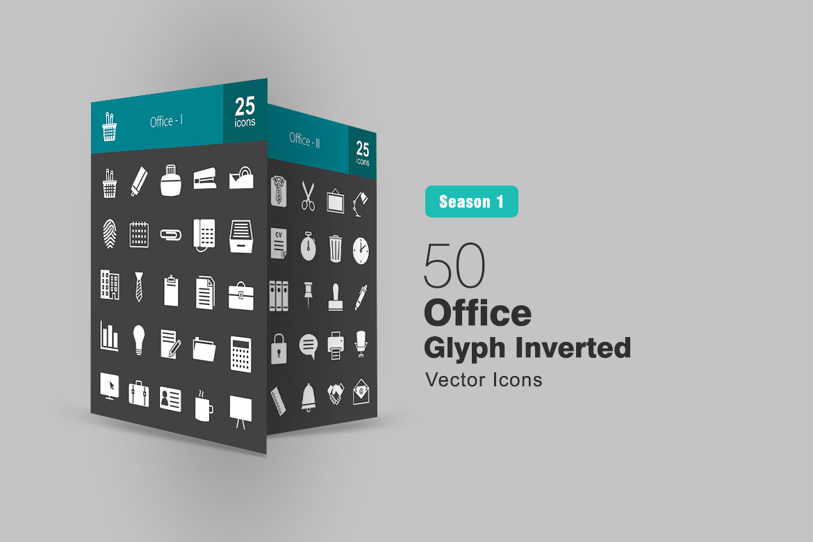 Download Набор иконок "50 Office Glyph Inverted Icon Set" / 50 Office Glyph Inverted Icon Set - Набор иконок на тему графика office icons file icon folder calendar telephone briefcase identity card tea report clock chat bubble chair printer handshake board stamp