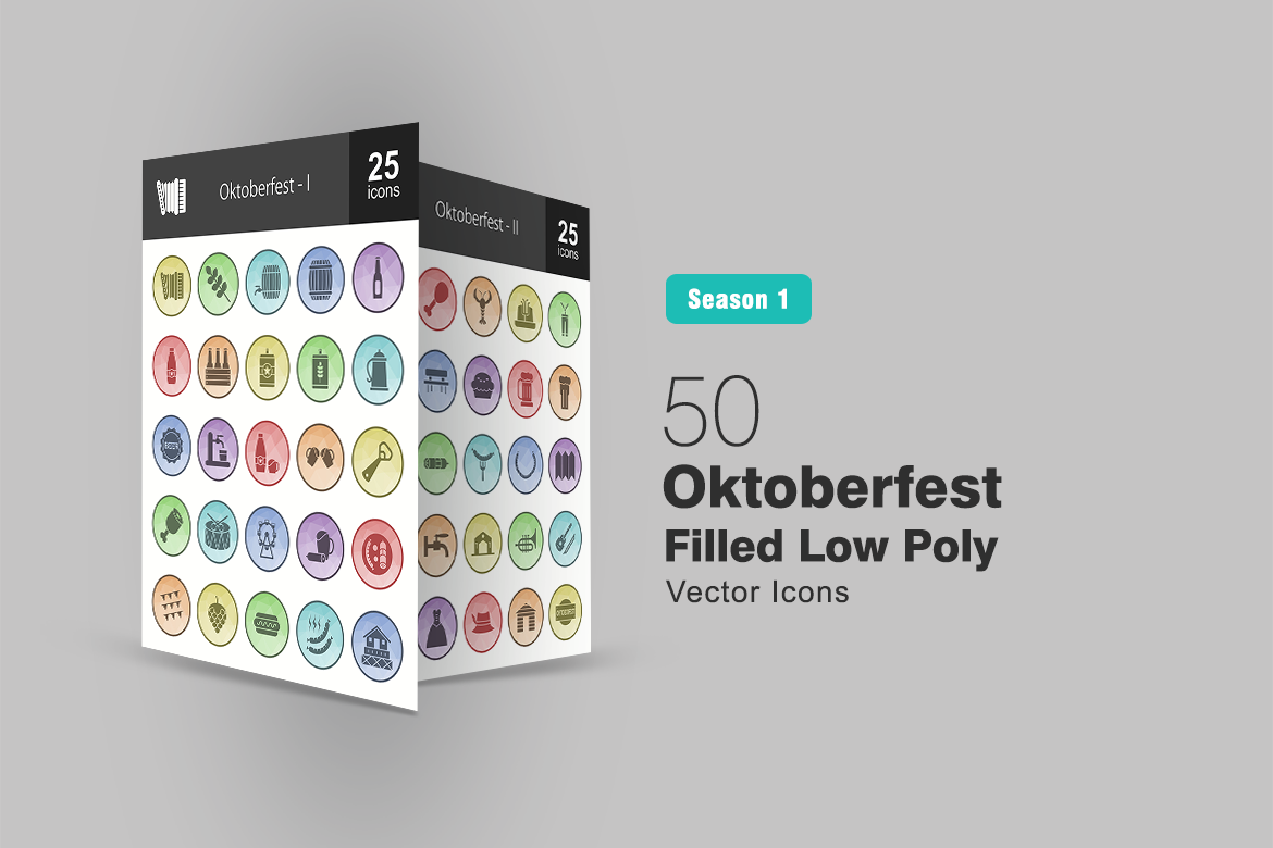 Download Набор иконок "50 Oktoberfest Filled Low Poly Icon Set" / 50 Oktoberfest Filled Low Poly Icon Set - Набор иконок на тему графика oktoberfest,icon,festival,beer,october,barley,barrel,accordion,bottle,can,mug,tap,toast,opener,ham,drum,dress,food,violin,hot