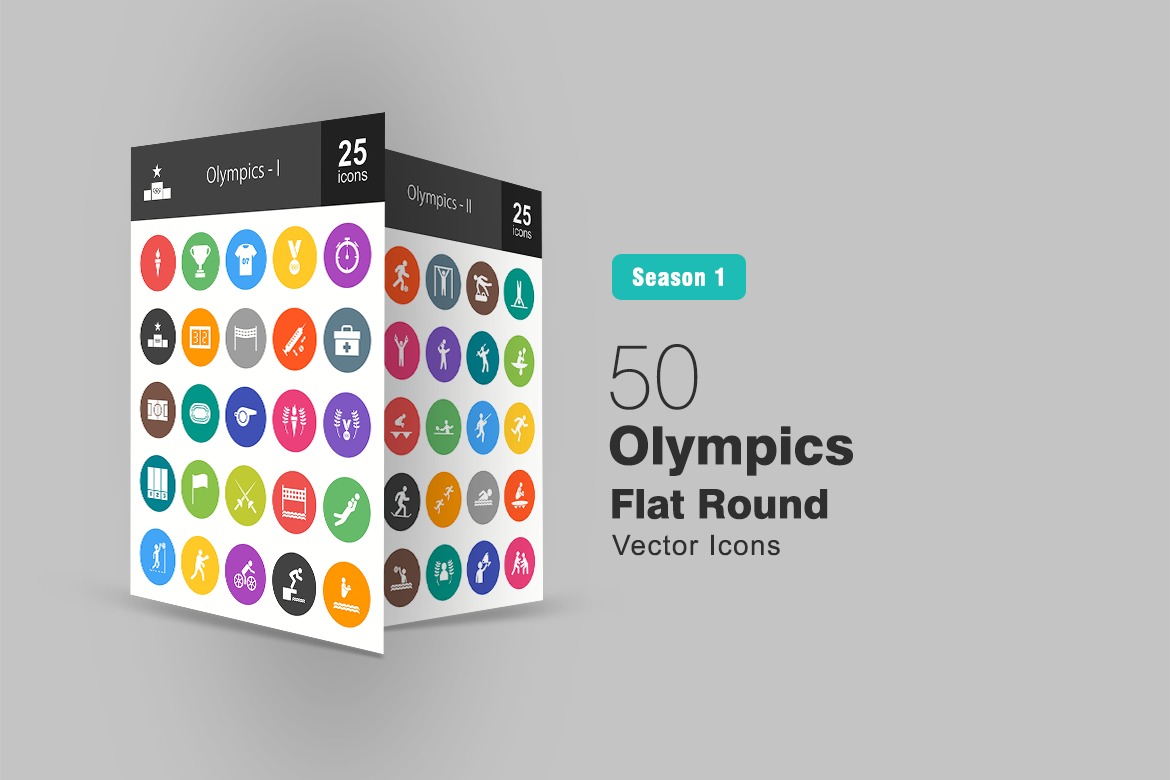 Download Набор иконок "50 Olympics Flat Round Icon Set" / 50 Olympics Flat Round Icon Set - Набор иконок на тему графика olympics,icon,games,torch,trophy,sports,medal,winners,score,finish,first,aid,field,stadium,whistle,lane,flag,sword,ball,volleyball