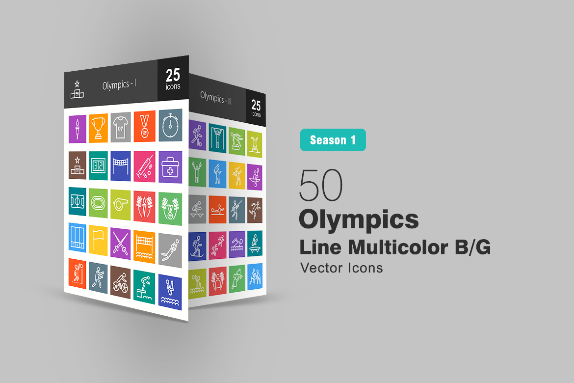 Download Набор иконок "50 Olympics Line Multicolor B/G Icon Set" / 50 Olympics Line Multicolor B/G Icon Set - Набор иконок на тему графика olympics,icon,games,torch,trophy,sports,medal,winners,score,finish,first,aid,field,stadium,whistle,lane,flag,sword,ball,volleyball