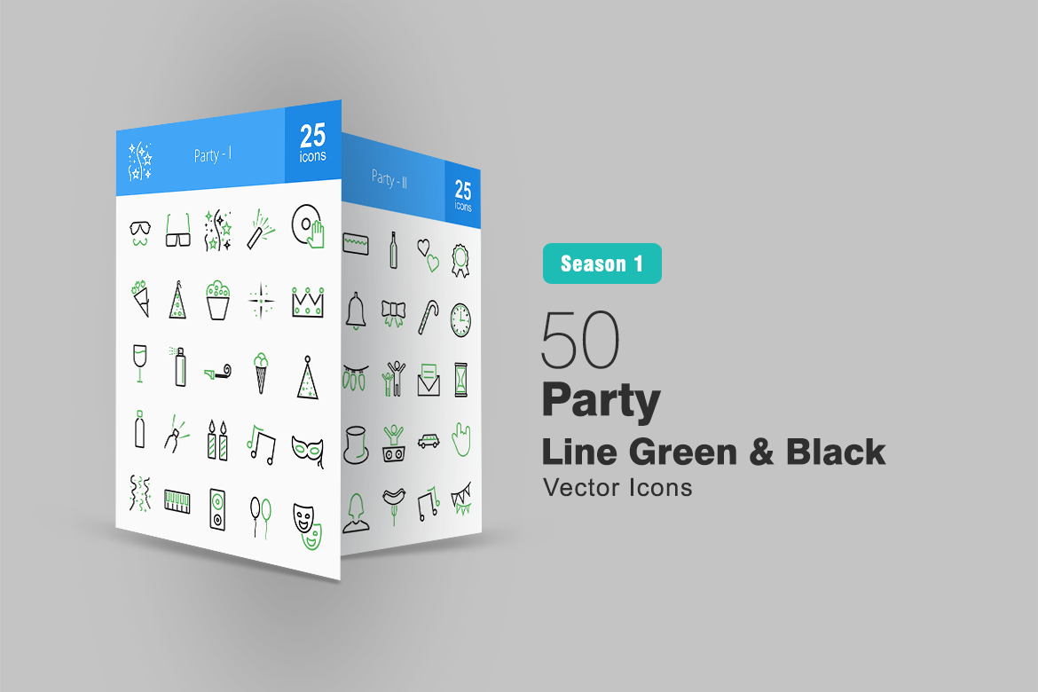 Download Набор иконок "50 Party Line Green & Black Icon Set" / 50 Party Line Green & Black Icon Set - Набор иконок на тему графика party icon celebration music drinks food blower spray icecream bottle speaker balloons guitar fireworks invitation hat limousine hot dog iconbunny
