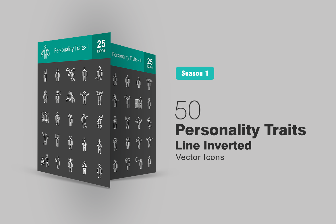 Download Набор иконок "50 Personality Traits Line Inverted Icon Set" / 50 Personality Traits Line Inverted Icon Set - Набор иконок на тему графика personality,icon,active,alien,ambitious,attractive,brave,brilliant,carefree,cheerful,confident,expert,generous,humble,naive,nerd,optimistic,organized,patient,practical