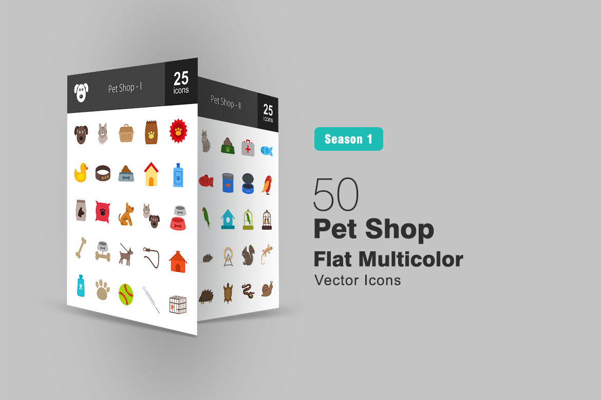 Download Набор иконок "50 Pet Shop Flat Multicolor Icon Set" / 50 Pet Shop Flat Multicolor Icon Set - Набор иконок на тему графика pet icon shop cage house food tank medicine injection ball milk leash bone cushion veterinary dog cat mouse bird parrot
