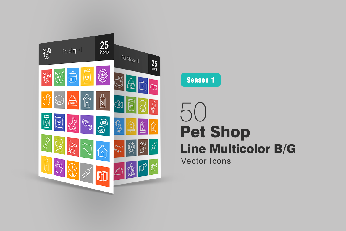 Download Набор иконок "50 Pet Shop Line Multicolor B/G Icon Set" / 50 Pet Shop Line Multicolor B/G Icon Set - Набор иконок на тему графика pet icon shop cage house food tank medicine injection ball milk leash bone cushion veterinary dog cat mouse bird parrot