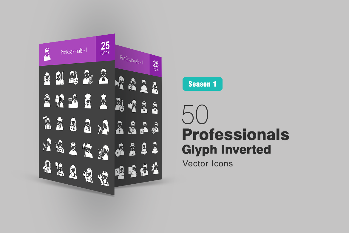 Download Набор иконок "50 Professionals Glyph Inverted Icon Set" / 50 Professionals Glyph Inverted Icon Set - Набор иконок на тему графика professional icon waiter doctor engineer teacher professor maid pilot driver worker student farmer chef policeman painter singer artist iconbunny flat