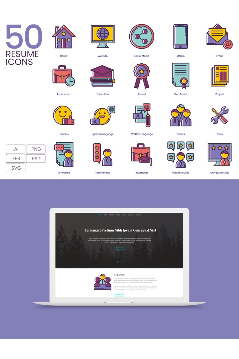 Download Набор иконок "50 Resume Icons - Lilac Series Set" / 50 Resume Icons - Lilac Series Set - Набор иконок на тему графика