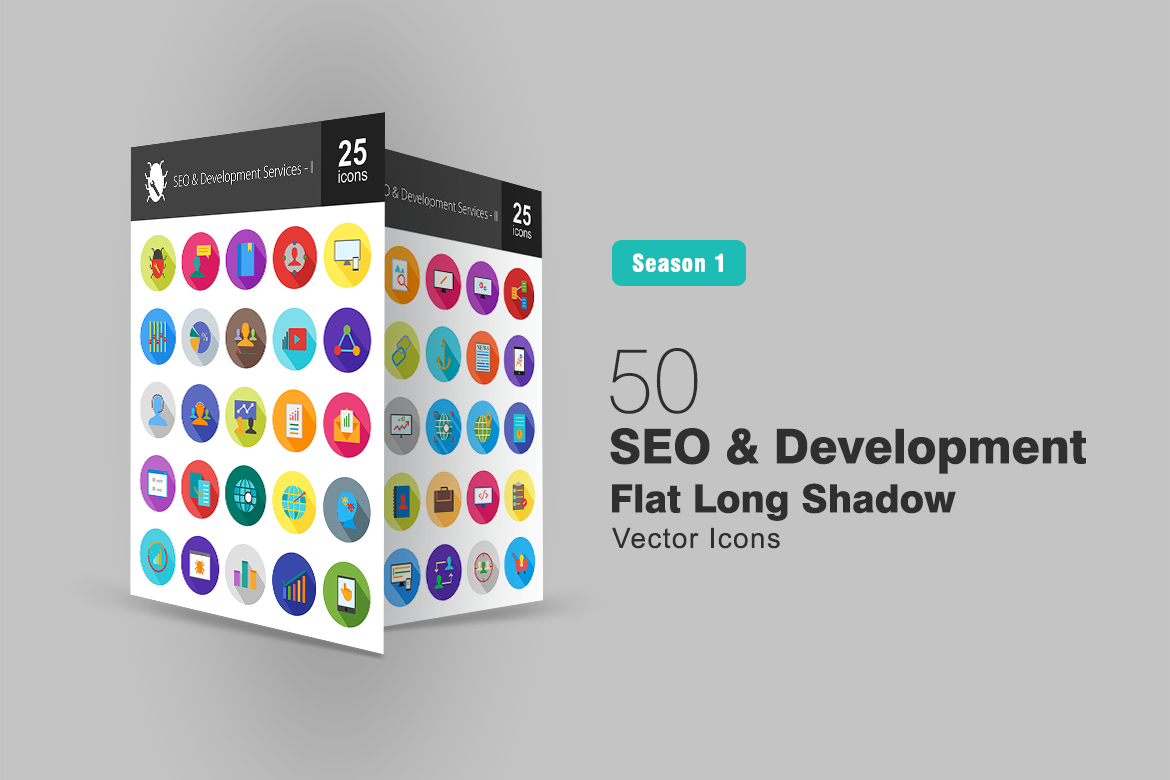 Download Набор иконок "50 SEO & Development Flat Long Shadow Icon Set" / 50 SEO & Development Flat Long Shadow Icon Set - Набор иконок на тему графика seo icon development services blog responsive design competitor analysis related content email marketing customer support mobile application game developing monitoring