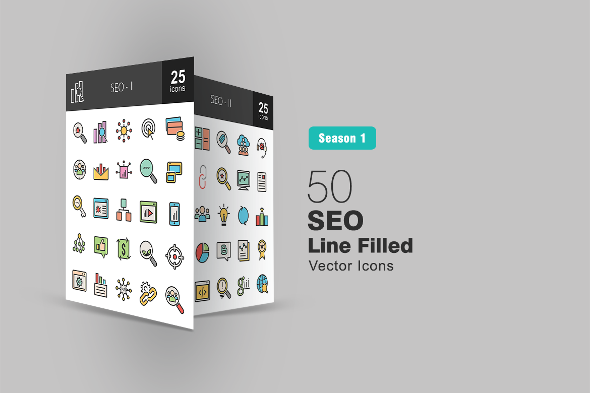 Download Набор иконок "50 SEO Filled Line Icon Set" / 50 SEO Filled Line Icon Set - Набор иконок на тему графика advertising icon analysis seo marketing optimization link building search engine web blog computing consultation digital statistics target technology crawler iconbunny
