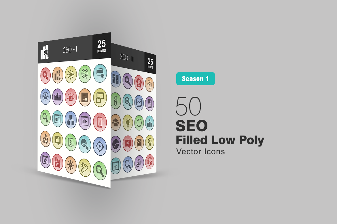 Download Набор иконок "50 SEO Filled Low Poly Icon Set" / 50 SEO Filled Low Poly Icon Set - Набор иконок на тему графика advertising icon analysis seo marketing optimization link building search engine web blog computing consultation digital statistics target technology crawler iconbunny