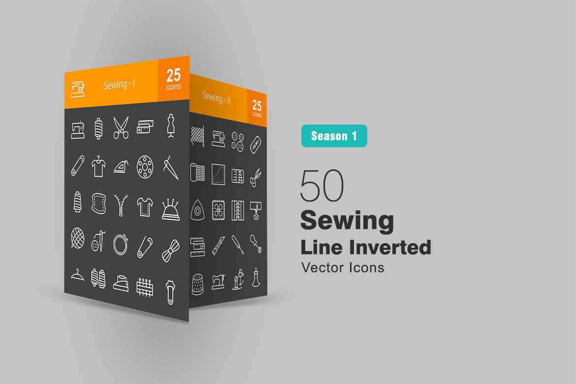 Download Набор иконок "50 Sewing Line Inverted Icon Set" / 50 Sewing Line Inverted Icon Set - Набор иконок на тему графика sewing,icon,machine,thread,scissors,tape,dummy,pin,shirt,iron,needle,zip,wool,button,embroidery,hanger,stitching,knitting,blade,clothes
