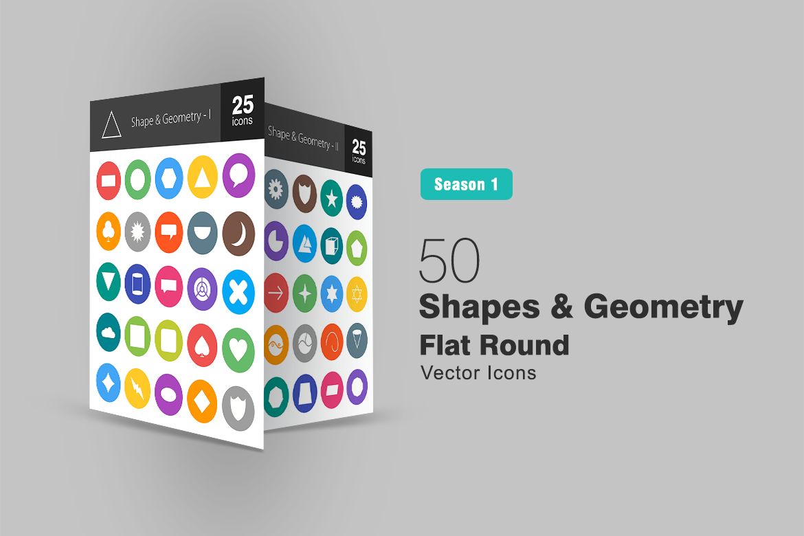 Download Набор иконок "50 Shapes & Geometry Flat Round Icon Set" / 50 Shapes & Geometry Flat Round Icon Set - Набор иконок на тему графика shapes icon geometry rectangle mathematical signs square circle triangle line cylinder bubble cloud diamond lightning arrow star cube cone iconbunny