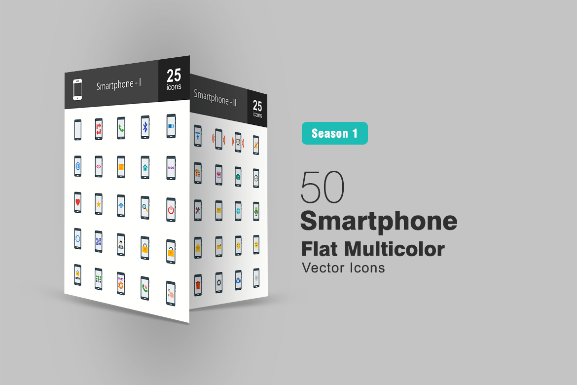 Download Набор иконок "50 Smartphone Flat Multicolor Icon Set" / 50 Smartphone Flat Multicolor Icon Set - Набор иконок на тему графика smartphone,icon,cell,phone,call,battery,email,code,screen,favorites,starred,wifi,power,restart,user,locked,passcode,pattern,gestures,vibration