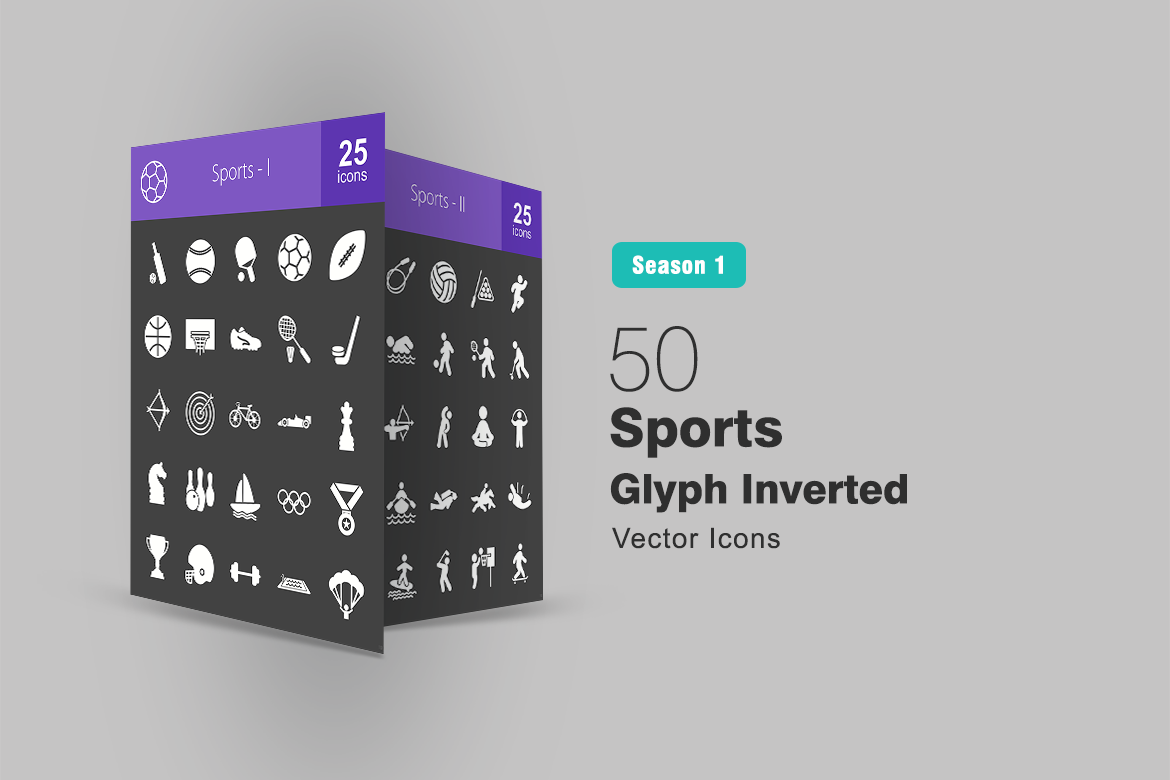 Download Набор иконок "50 Sports Glyph Inverted Icon Set" / 50 Sports Glyph Inverted Icon Set - Набор иконок на тему графика sports icon fitness games cricket football hockey tennis badminton board basketball baseball soccer golf billiard snooker exercise swimming iconbunny flat